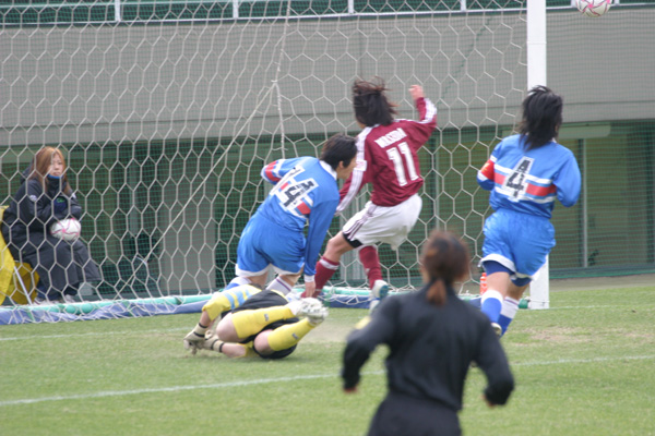 ループ気味のシュートをDFがヘディングでクリアしたかに見えたが、線審が旗を揚げ、ゴールインの判定。